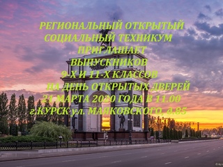 21 марта 11 часов состоится день открытых дверей в Региональном Открытом Социальном техникуме. Приходите все.